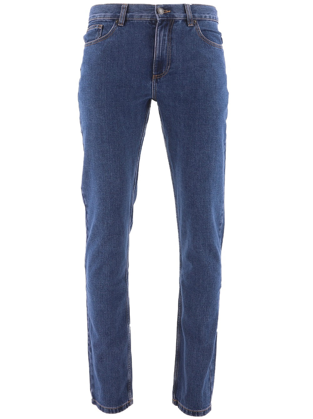Crafted with a durable denim construction, these jeans boast a functional five-pocket design and are enhanced with contrast stitching for a stylish twist on a traditional look. The stretch straight leg fit ensures flexibility and ease of movement, while the zip and button fastening provides a secure closure.