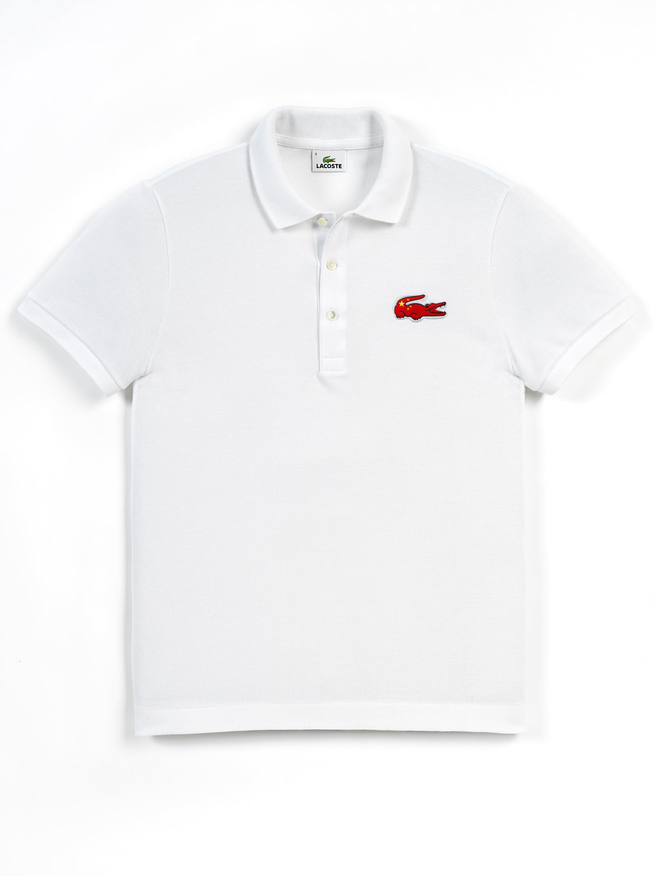 Lacoste White Regular Fit China Flag Croco Polo Shirt